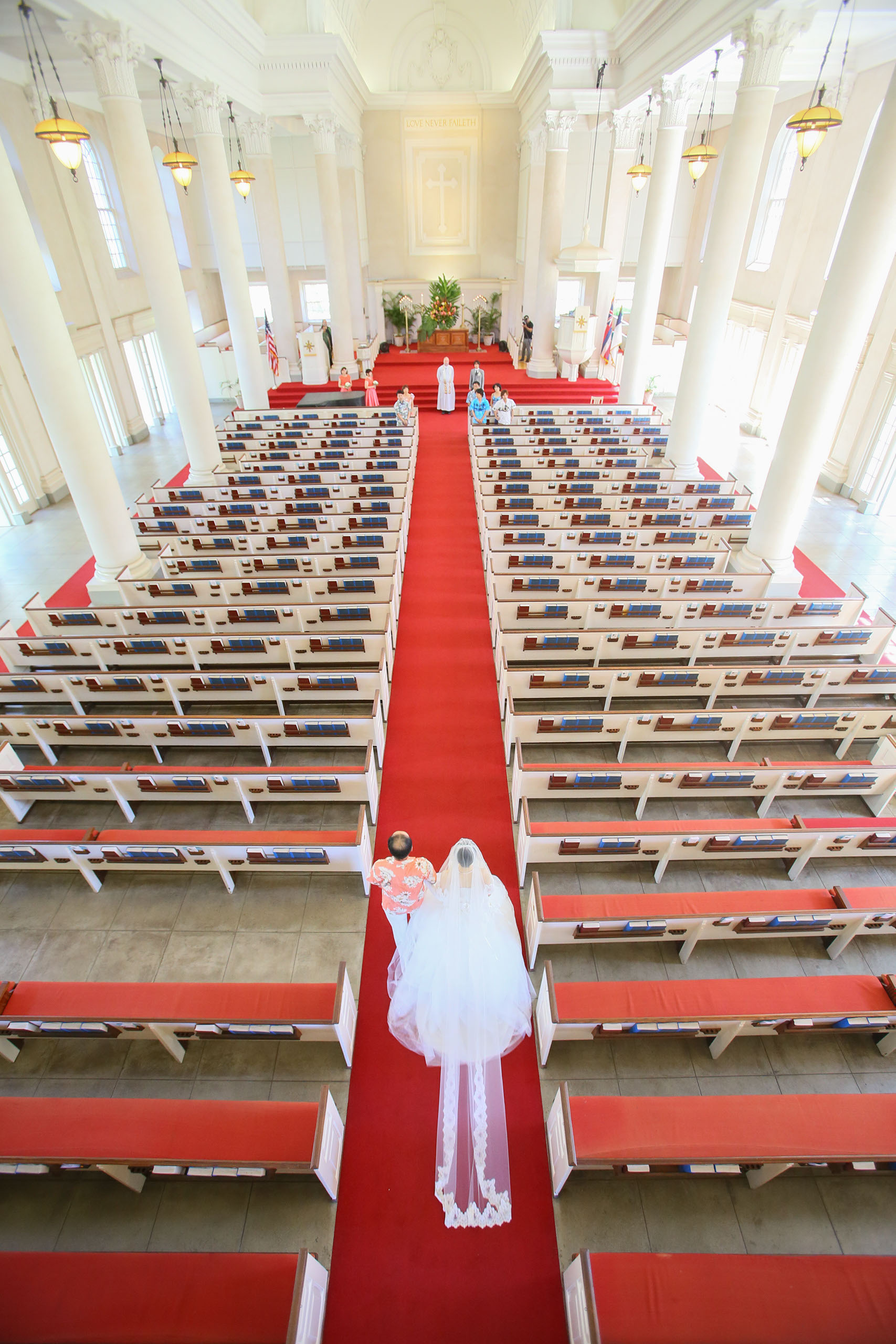 ワイキキから車で約10分、山の手前のプナホウ地区に位置しており、とても広い敷地に大聖堂と中聖堂が並んだ右側の尖り屋根の教会です。聖堂内は白基調で、どこの場所を選んでも撮影に適したフォトジェニックな内装です。